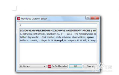 这将主动打开一个窗口,在Mendeley的库中搜刮文档。