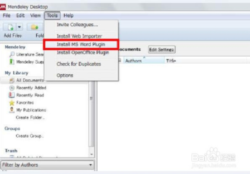 单击Mendeley的“东西选项卡”⇒“安装MS Word插件”。若是Word处于打开状况,请封闭一次。