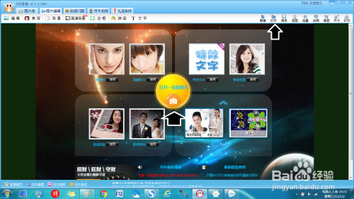 打开可牛图片编纂软件→点击中心的打开一张图片按钮,也可以在右上方的东西栏上点击打开菜单。