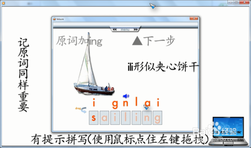sailing风帆活动等诠释,一词多义的单词要连系当下的表述(或图片)来选择翻译。同时,注重有些单词会有一些小纪律,好比sailing单词的ili就很出格,本人称其为“夹心饼干”!每个人对记忆单词都有本身的方式和敏感点,可以自由阐扬(此法不适合过目成诵的“童鞋”)。