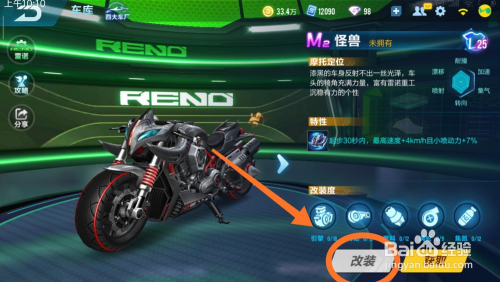 然后我们在进入的界面,点击游戏角的【改装】按钮,进入到改装界面,如图所示
