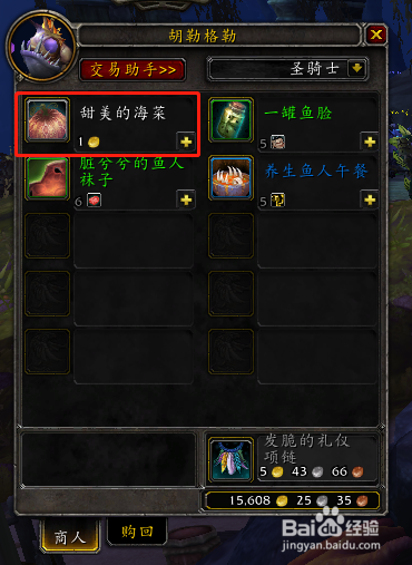 它出售的物品里面,第一个就是甜美的海菜,1金1个,直接采办就可以了。