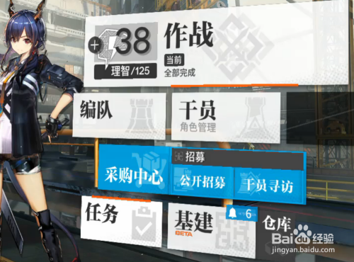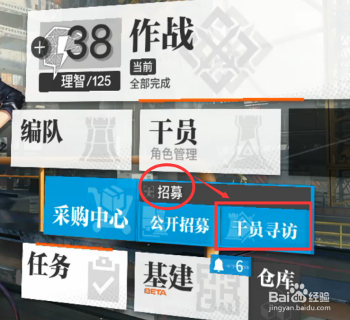 然后我们需要做的就是寻访干员,大师可以点击右侧的寻访干员的选项。