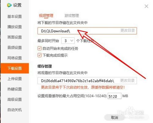 在右侧的窗口中,就可以设置当前下载视频的保留文件夹了。