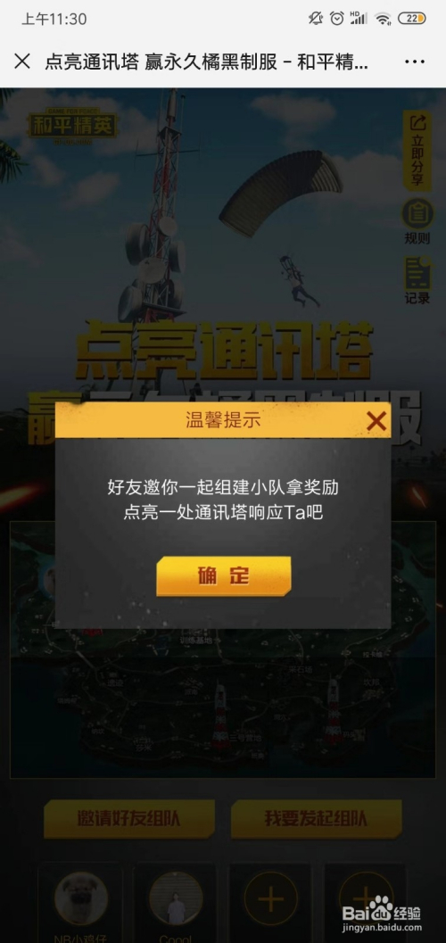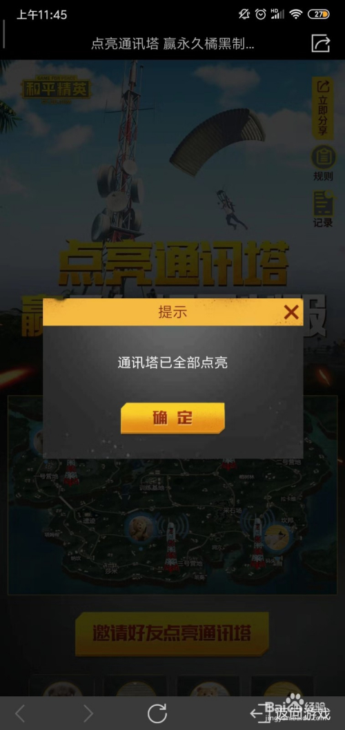 进入活动页面,需要邀请3位老友点亮通信塔才能抽奖,点击分享;