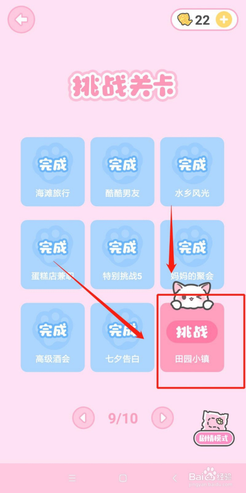 进入挑战模式后,点击挑战81关田园小镇