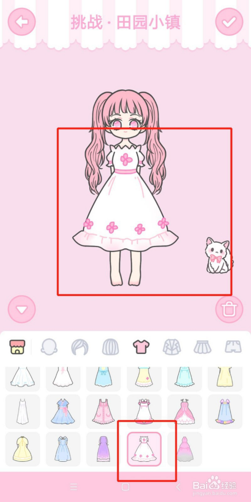 衣服:穿一条白色裙子