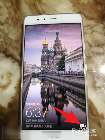 然后要摄影,点击锁屏上的按钮,那么按白色按钮,就可以摄影了。