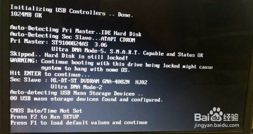 按下开机,那么此时可以进到BIOS,过程没有提醒error了的,如下。