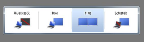 同时按住键盘的“win键”和“P”,可以打开切换显示体例的快捷菜单,如下图所示▼,可以在本家儿副屏之间快速切换。