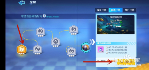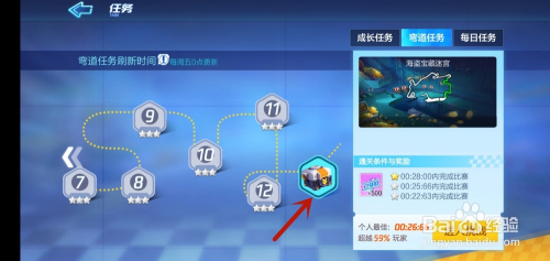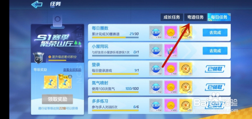 然后我们在进入的界面,点击上面的【弯道使命】选项,如图所示。