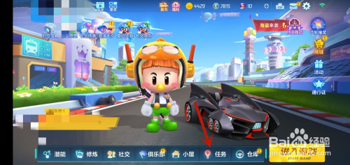 首先我们将跑跑卡丁车游戏打开,在里面点击下面的【使命】选项,如图所示。
