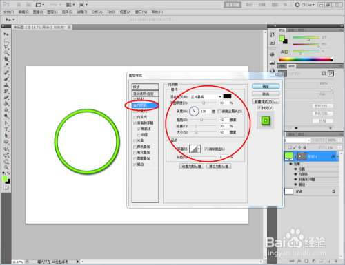 鼠标双击图示区域,弹出【图层样式】设置栏,勾选【投影】、【内暗影】、【斜面和浮雕】以及【描边】,并按图示设置好对应的各个参数,完当作圆形图案的回环结果建造(如图所示);