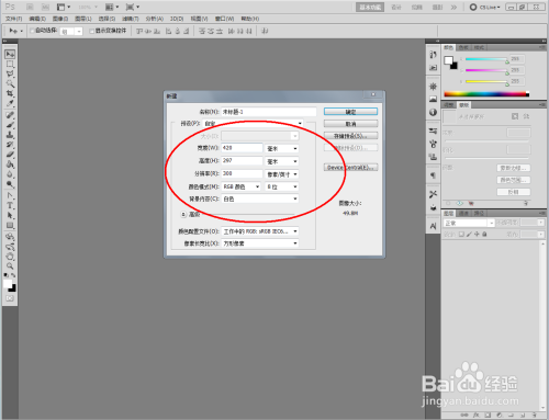 打开Photoshop CS5软件,点击【文件】-【新建】,按图示参数新建一个ps文档;