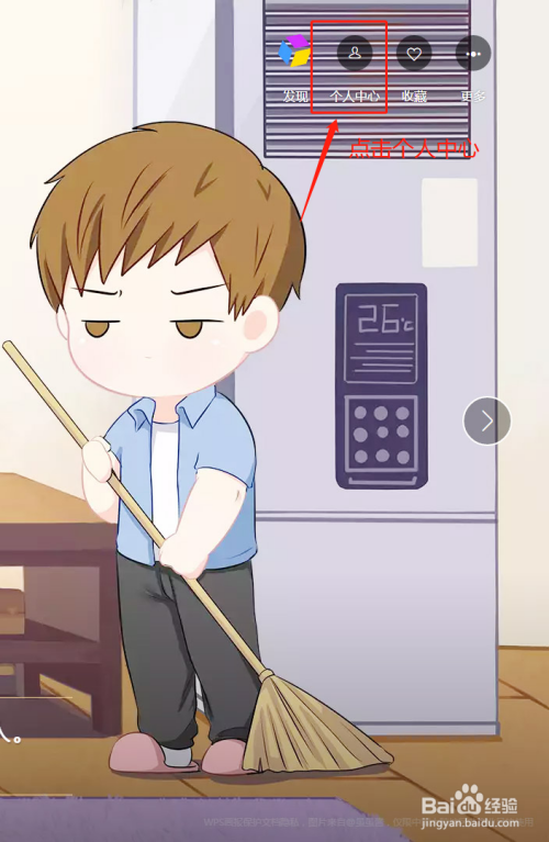 在弹出的屏幕中,点击右上角的“小我中间”。