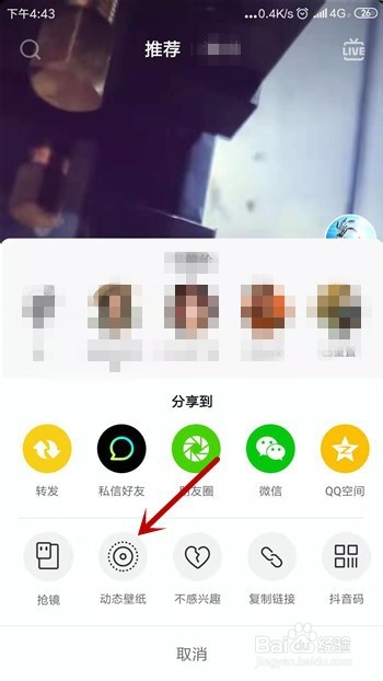 我们需要在分享界面的第二行标的目的右进行滑动直至找到【动态壁纸】。