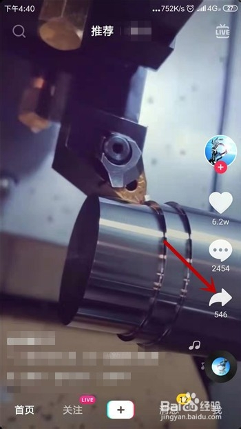 点击打开抖音,在想建造动态壁纸的视频中点击右侧【分享】。