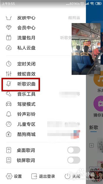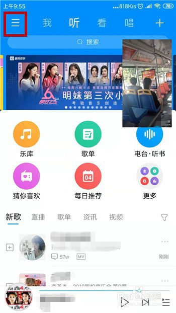 点击之后视频就会呈现在右上角位置,这时辰我们去打开酷狗。