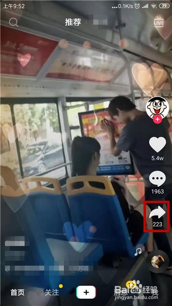 打开手机中的抖音,在视频播放界面中点击右侧的【转发】功能。
