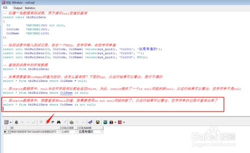 oracle数据库中插入一行记实时,若是不给某一个栏位赋值,且该栏位是可空字段,那么,这个栏位的值就可能会是null或者空字符串,那么,对于这种null、空字符串值到底该如何查询呢?