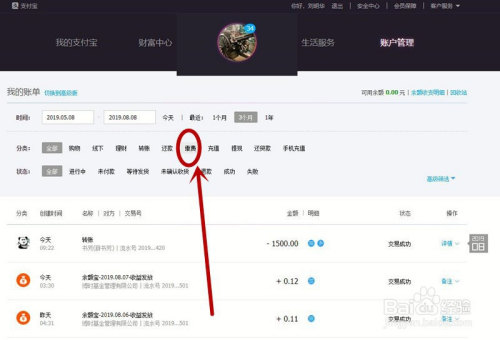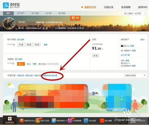 在支付宝官网首页找到“查看所有买卖记实”单击