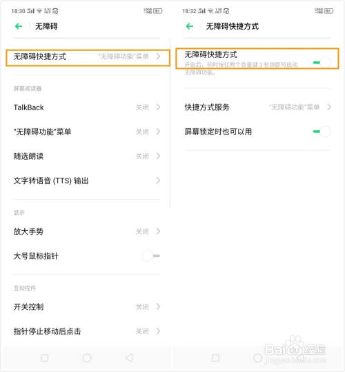 2、开启【无障碍快捷体例】开关,后续就可以同时按住音量上下按键3秒开启无障碍功能。