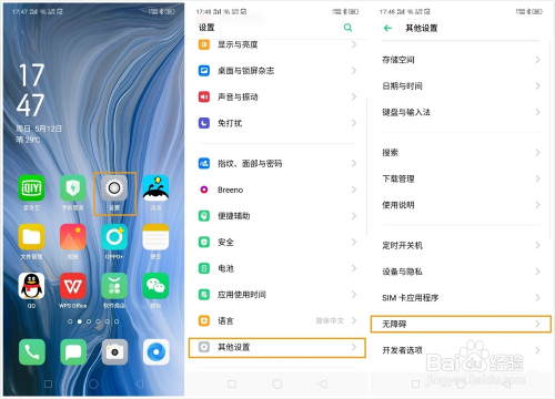 1、首先经由过程桌面【设置】—【其他设置】—进入【无障碍】界面。