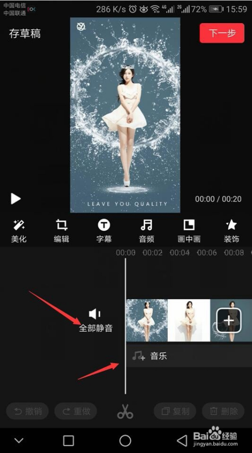 首先把原视频原音静音