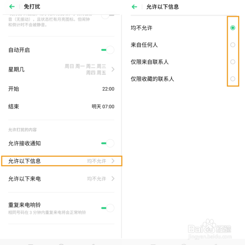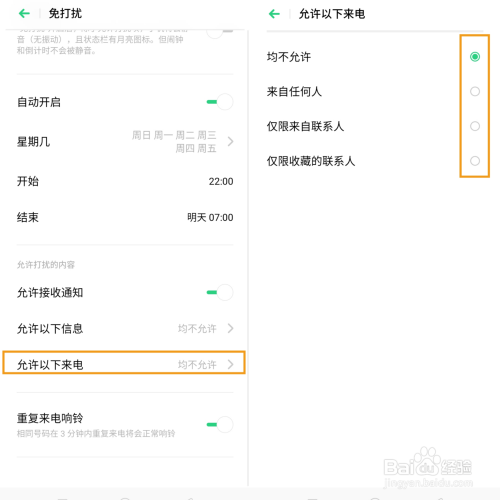 7、许可以下来电—选择性的接收联系人来电。
