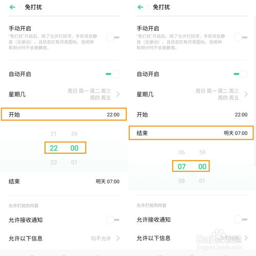 4、设定每日开启和竣事时候,点击起头上下滑动选择开启的时候,竣事时候也是如斯操作。