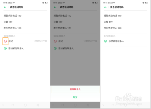 3、可继续点击【添加告急联系人】进行添加;别的,点击【-】图标会呈现一个垃圾篓图标,点击即可对之前添加的联系人进行删除。