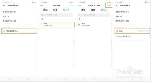 2、点击【告急联络号码】—【添加告急联系人】然后进行勾选响应的联系人,点击添加即可。