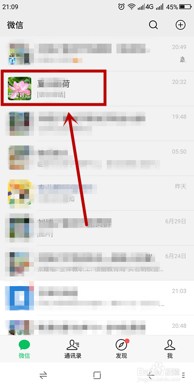 在微信首页,找到肆意一个微信老友,选中并单击打开聊天窗口