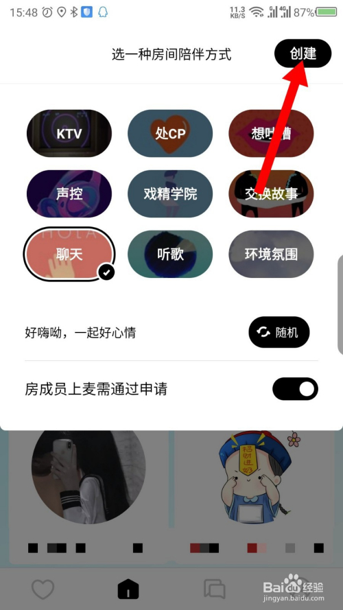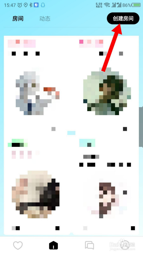 在打开的界面中,点击右上角的建立房间。如图所示