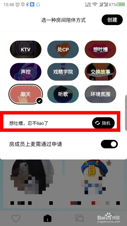 假设建立聊天房间,鄙人面可以设置聊天的话题。如图所示