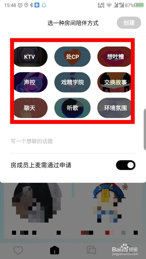 点击建立房间后,在打开的界面中,选择房间的类型。如图所示