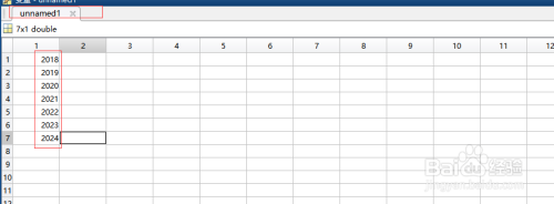 新建的X数据如下图,此时变量默认为unnamed(未定名);