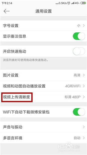 接下来在通用设置中即可看到【视频上传清楚度】,点击它。