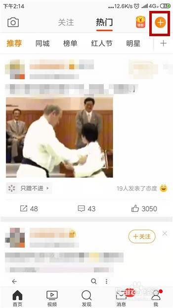 设置好后即可去上传视频,返回到首页后点击右上角【+】。