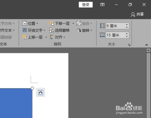 选中矩形,调整一下矩形的长宽。按照5:3的比例,将其设置为长15厘米,宽为9厘米。