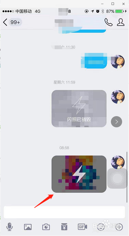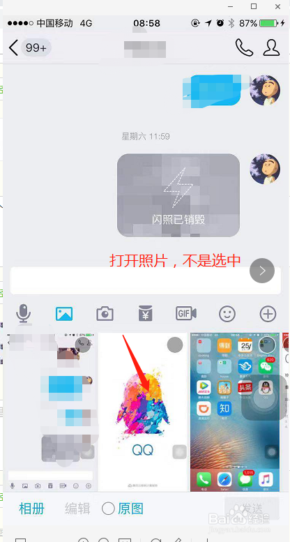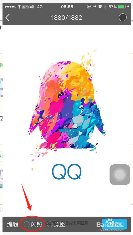 打开照片后,下方就会呈现闪照功能,选中闪照功能