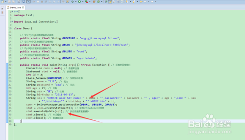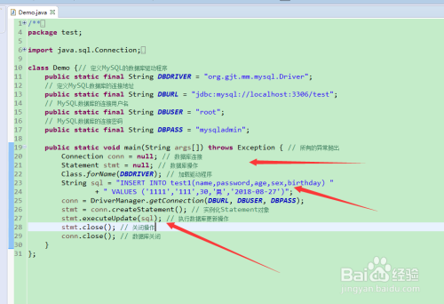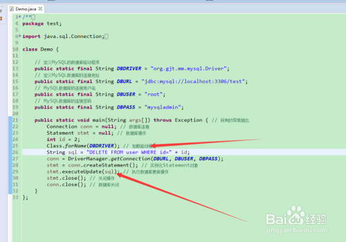 利用java代码想test表中增减数据,数据库毗连的本家儿要步调是, 数据库毗连、数据库操作、加载驱动程序、实例化statement对象、执行数据库更新操作、封闭操作