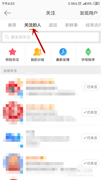 存眷的分类中点击【存眷的人】,鄙人方点击要打消存眷的人。