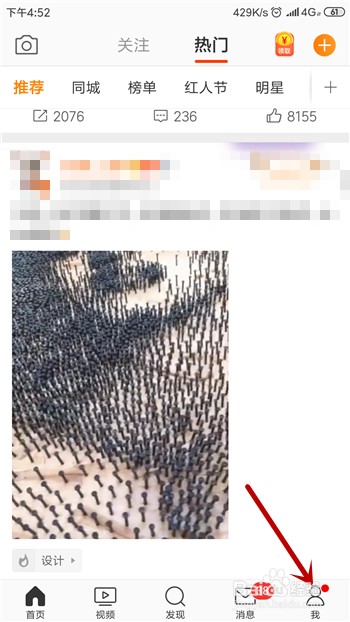 点击打开微博,在微博首页点击底部导航栏的【我的】。