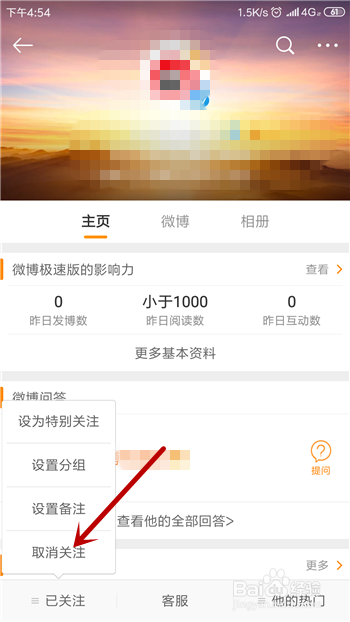 我们在微博中会存眷良多人,但存眷之后又不想存眷这小我了,那怎么打消存眷呢?和小编一路看看方式吧。
