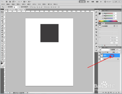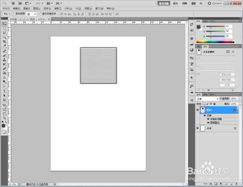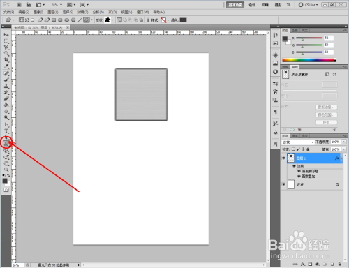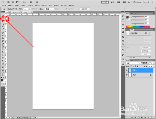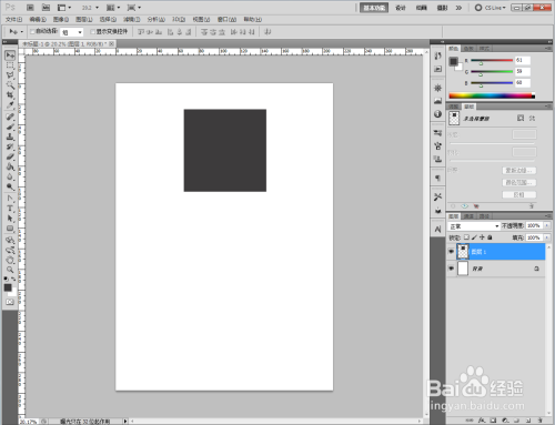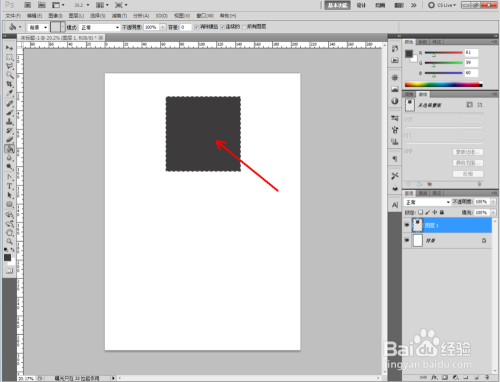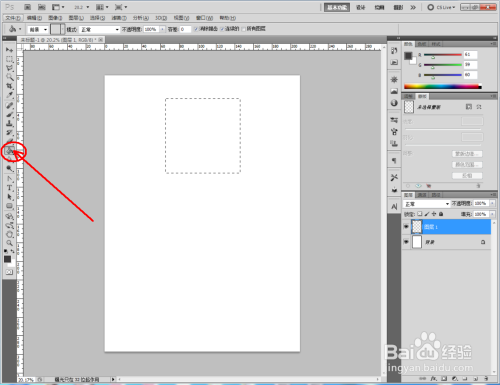 点击右下角的【新建图层】图标,新建一个空白图层。点击【矩形选框东西】在作图区域绘制一个矩形选框后,点击【油漆桶东西】将选框部门填充为:黑色;
