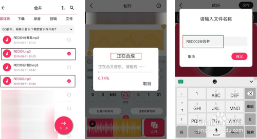 若是要两个归并的灌音勾选之后,点击“下一步”,可以选择音量大小,速度等在进行“归并”,“试听”后“保留”同样也可以定名