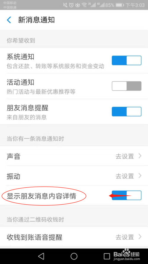 接收支付宝老友信息提醒,但不要显示动静内容怎么操作?就是有支付宝老友给我们发信息,我们能收到提醒,有支付宝老友给我们发信息了,可是提醒的时辰无需显示伴侣动静发的内容怎么弄?因为一部门动静内容会让正在做其它工作的你分心,具体操作如下