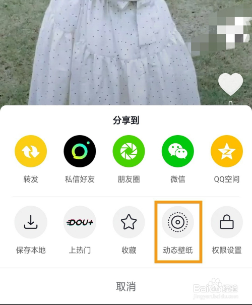 弹出分享社交菜单,找到【动态壁纸】的选项,见下图