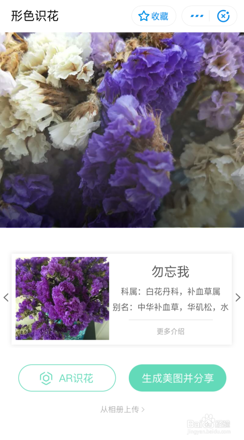 2、点击【从相册上传】,可以从之前保留的花朵照片里选择一张来识别。